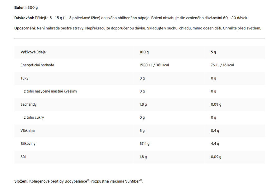 - Obsahuje kolagen ve formě vstřebatelných peptidů