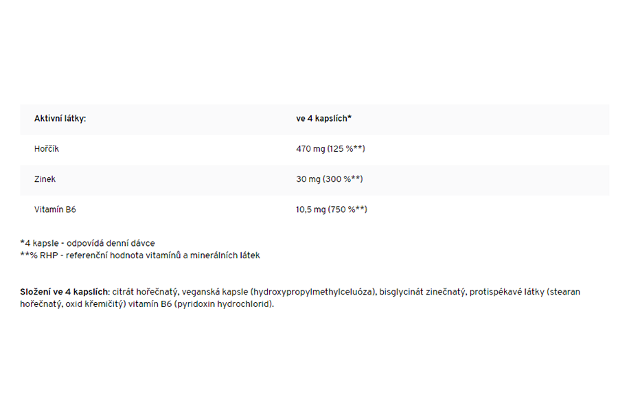 - Zinek, hořčík a vitamín B6